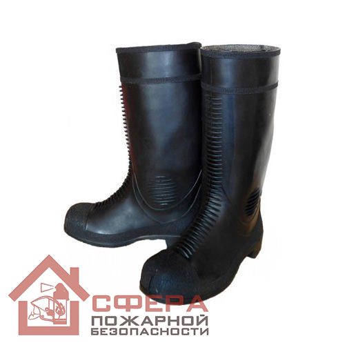 Сапоги имеют специальную противоскользящую подошву, позволяющую удерживать равновесие на скользкой поверхности. Внутри изделия помещается вкладной чулок, позволяющий повысить термоизоляцию и обеспечить комфортное использование. Стелька изготавливается из сукна или синтетического меха. Сапоги резиновые с защитным подноском термостойкие являются обязательным атрибутом пожарного снаряжения каждого расчёта.