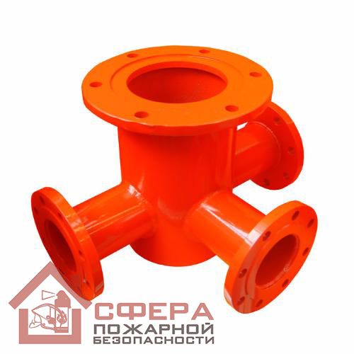 Пожарная подставка ППТФ 200х150 является соединительным элементом пожарной магистрали. Основным её предназначением является установка пожарного гидранта. Помимо этого, с помощью изделия можно создать дополнительную водопроводную линию. Пожарная подставка фланцевая представляет собой изделие, состоящее из основного патрубка, имеющего фланцы с одной стороны и заглушку с другой. На боковых стенках основной трубы имеются три вспомогательных ответвления, расположенных под прямым углом. Диаметр внутри основной трубы составляет 200 мм, боковых отводов – 150 мм.