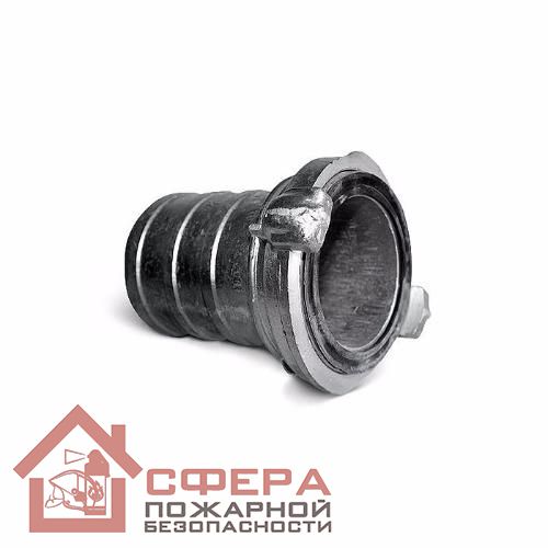 Фиксация головки на пожарном рукаве происходит с помощью специальных колец либо обожжённой проволоки. Для этого на хвостовике изделия имеются специальные кольцевые канавки. В качестве несущей детали выступает втулка, выполненная в форме крышки. На торце данной детали имеется специальный кольцевой паз, предназначенный для резинового уплотнительного кольца. Резиновое кольцо выступает в роли сальника, препятствующего протечке воды. На втулку надета обойма, оснащённая двумя «клыками» - зацепами. При сборке данного устройства, торцевые кромки изделий сопрягаются с последующим поворотом вдоль своей оси. Фиксация производится с помощью «клыков».