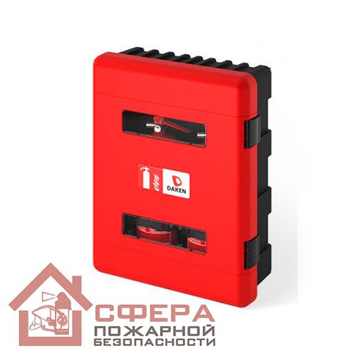 Пожарный шкаф, предназначенный для хранения 2 огнетушителей, Daken Dual изготовлен из качественного высокопрочного пластика, способного противостоять различным факторам негативного воздействия. Материал изготовления выдерживает кратковременное воздействие пламени, влияние прямых солнечных лучей, устойчив к агрессивной внешней среде.