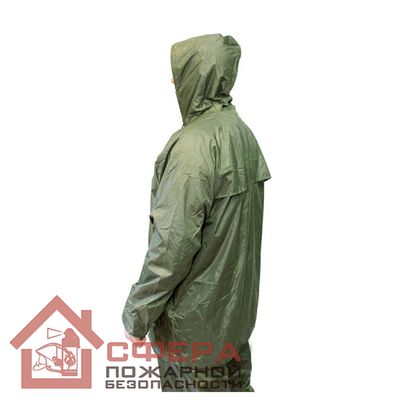 Комплект состоит из куртки, оснащенной капюшоном, и брюк. Костюм имеет удобные вместительные карманы и отверстия для удаления излишков влаги и тепла из внутреннего пространства. Изделие способно защитить от воздействия осадков, не пропускает влагу, устойчиво к воздействию механических нагрузок.
