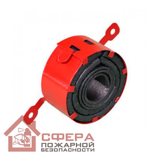 Изделие удобно при монтаже и использовании. С помощью муфты можно закрыть проход с уже проложенными коммуникациями. Для этой цели в стенке устройства имеется специальный разъемный замок. После его раскрытия муфта надевается на провод и защелкивается вокруг него по принципу кольца. Многократное расширение объема материала происходит под воздействием открытого пламени.