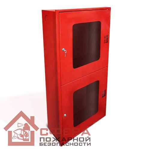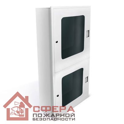 Шкаф состоит из двух отсеков, каждый из которых оборудован дверцей со стеклянной вставкой, позволяющей проверять наличие и сохранность средств пожаротушения. Возможность размещения двух пожарных рукавов в поворотных кассетах и двух углекислотных или порошковых огнетушителей позволяет эффективно бороться с возгораниями с помощью воды или химических веществ.