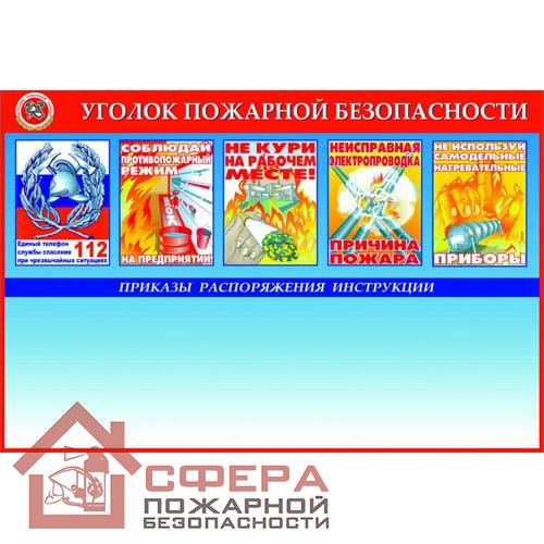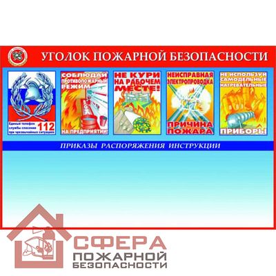 На производственных предприятиях и в офисных зданиях должен быть уголок пожарной безопасности, целью использования которого является ознакомление сотрудников с правилами поведения, направленными на предотвращение возгораний. Стенд содержит несколько иллюстраций, рассказывающих о причинах пожара и мерах безопасности на рабочем месте.