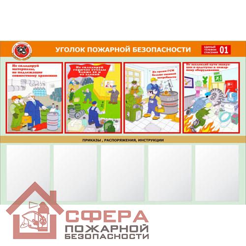С этой целью используется стенд «Уголок пожарной безопасности». Он должен иметься в каждом здании и размещаться на видном месте. На стенде располагается важная информация о соблюдении правил обращения с опасными предметами при работе. В нижней части плаката находятся специальные отделения для размещения любой другой информации – приказах, распоряжений и инструкций, направленных на обеспечение противопожарной безопасности.