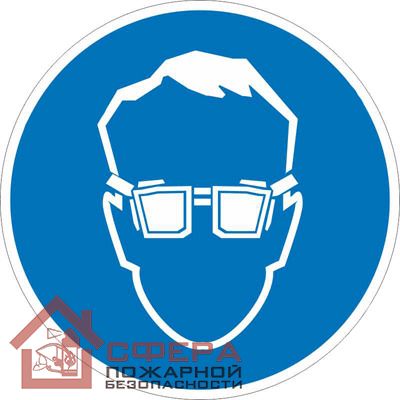 При работе со сварочным оборудованием, промышленными станками и другими установками, где существует возможность травмирования глаз, необходимо использовать специальные защитные очки. Они исключают риск механического повреждения органов зрения и защищают от попадания искр. Для того чтобы напомнить рабочим о требовании использовать индивидуальные средства защиты, на рабочих местах устанавливается специальный предписывающий указатель.